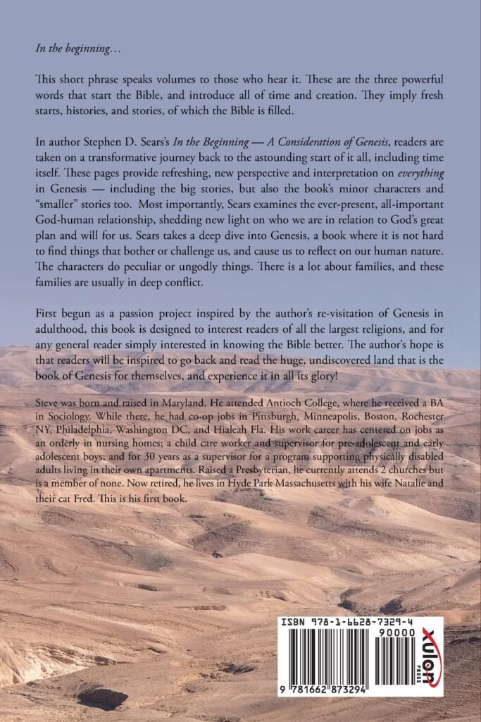 Sears takes a deep dive into Genesis, a book where it is not hard to find things that bother or challenge us, and cause us to reflect on our human nature. The characters do peculiar or ungodly things. There is a lot about families, and these families are usually in deep conflict. First begun as a passion project inspired by the author’s re-visitation of Genesis in adulthood, this book is designed to interest readers of all the largest religions, and for any general reader simply interested in knowing the Bible better. The author’s hope is that readers will be inspired to go back and read the huge, undiscovered land that is the book of Genesis for themselves, and experience it in all its glory!